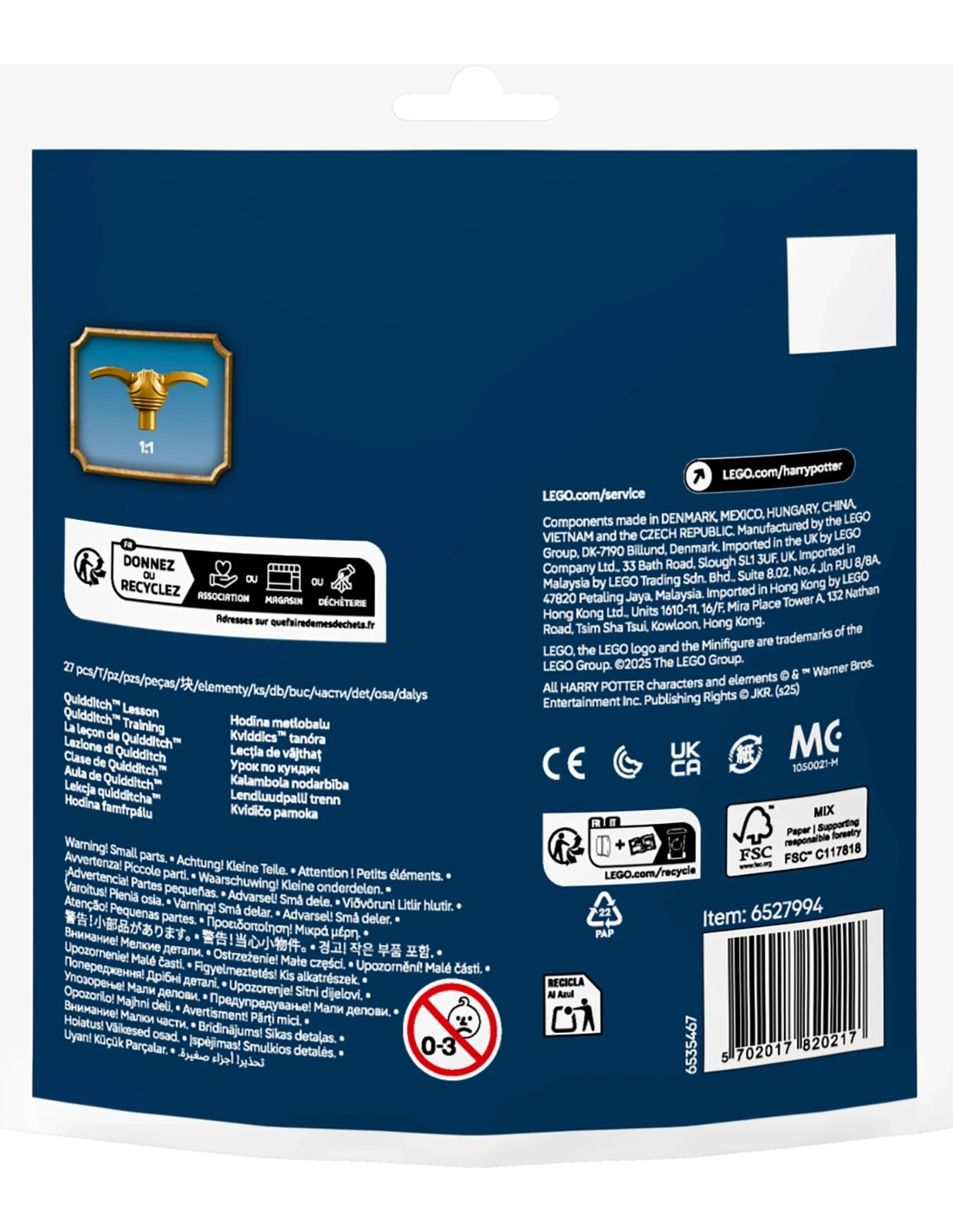 LEGO Harry Potter 30706 Quidditch Lesson obsahuje celkem 27 dílků a 2 minifigurky. Stavebnice byla vydána v roce 2025. Doporučený věk stavitele je od 6 let. Harry Potter 2001 - 2026 210