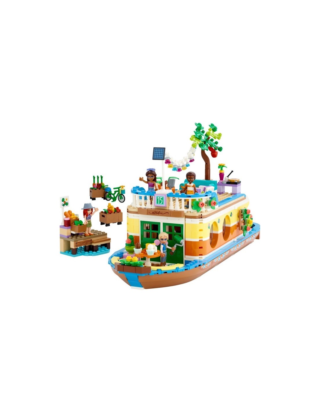 • Nepřeberné množství rolí – Součástí tohoto modelu hausbótu jsou 4 minipanenky, včetně Mii z LEGO® Friends, dále zvířecí figurka, jízdní kolo a samostatný prodejní stánek pro dlouhé hodiny kreativního hraní