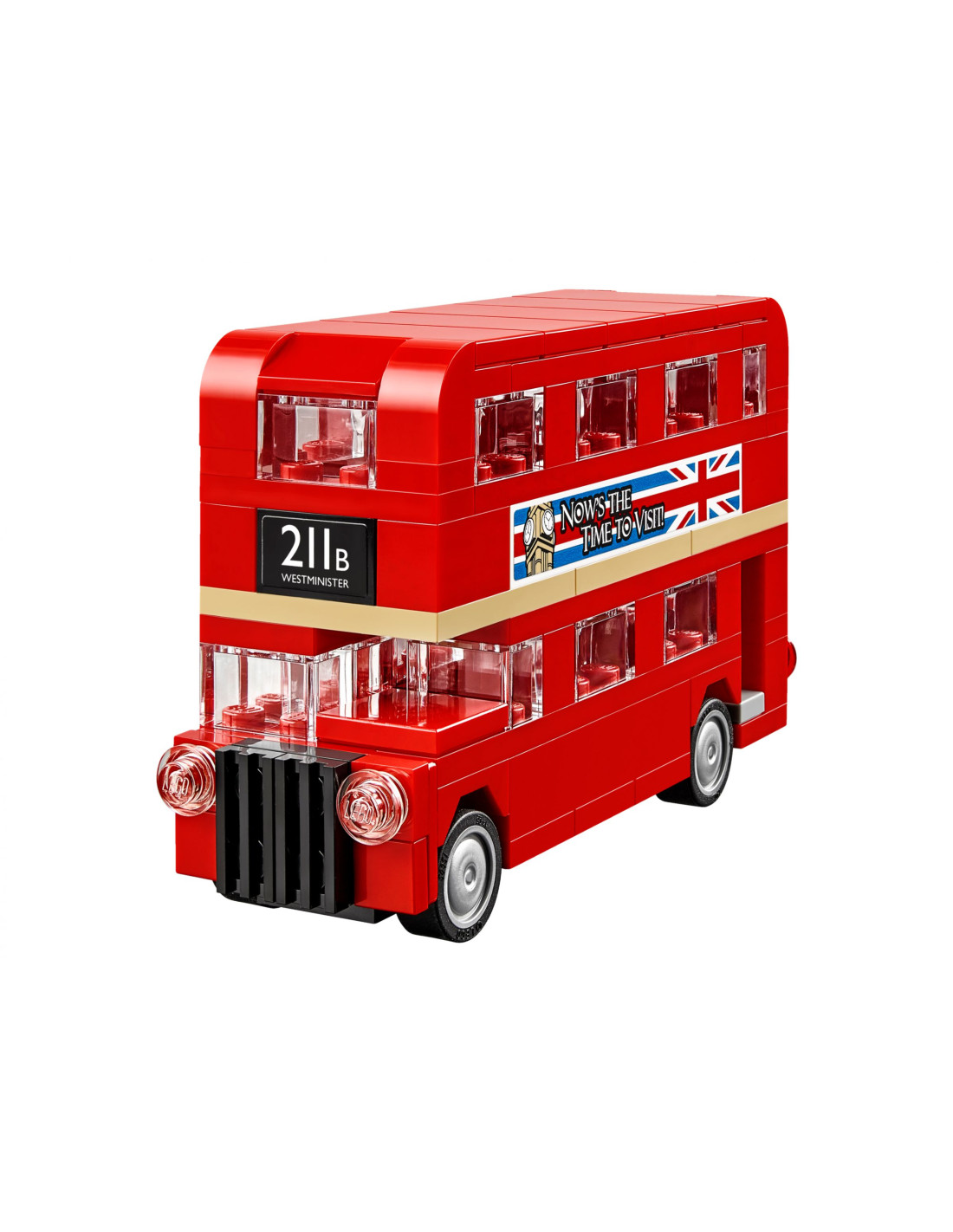 - This buildable LEGO® London bus features authentic details, rotating wheels, see-through windows and light elements and stickers for the number plate, route number, destination station name and advertising banners inspired by the LEGO Creator 21013 Big Ben and 10232 Palace Cinema models (not included) ).