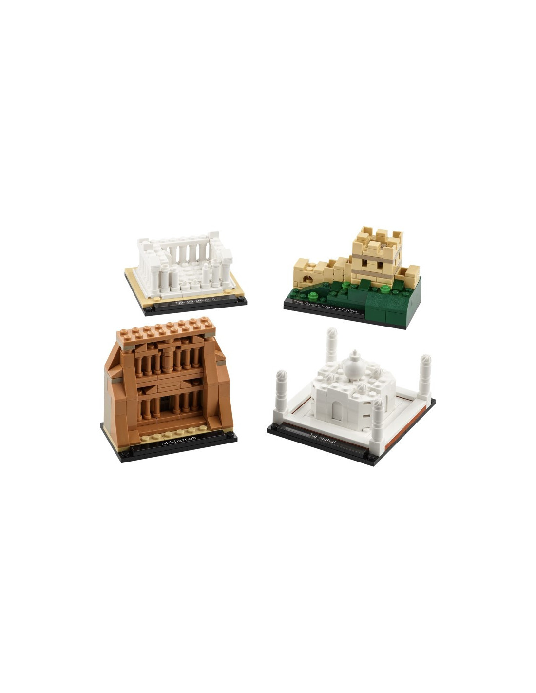 - Kam se vydáte? – Postavte si z LEGO® kostek Taj Mahal, Velkou čínskou zeď, Parthenón a pokladnici Al-Khazneh v Petře se jmenovkami